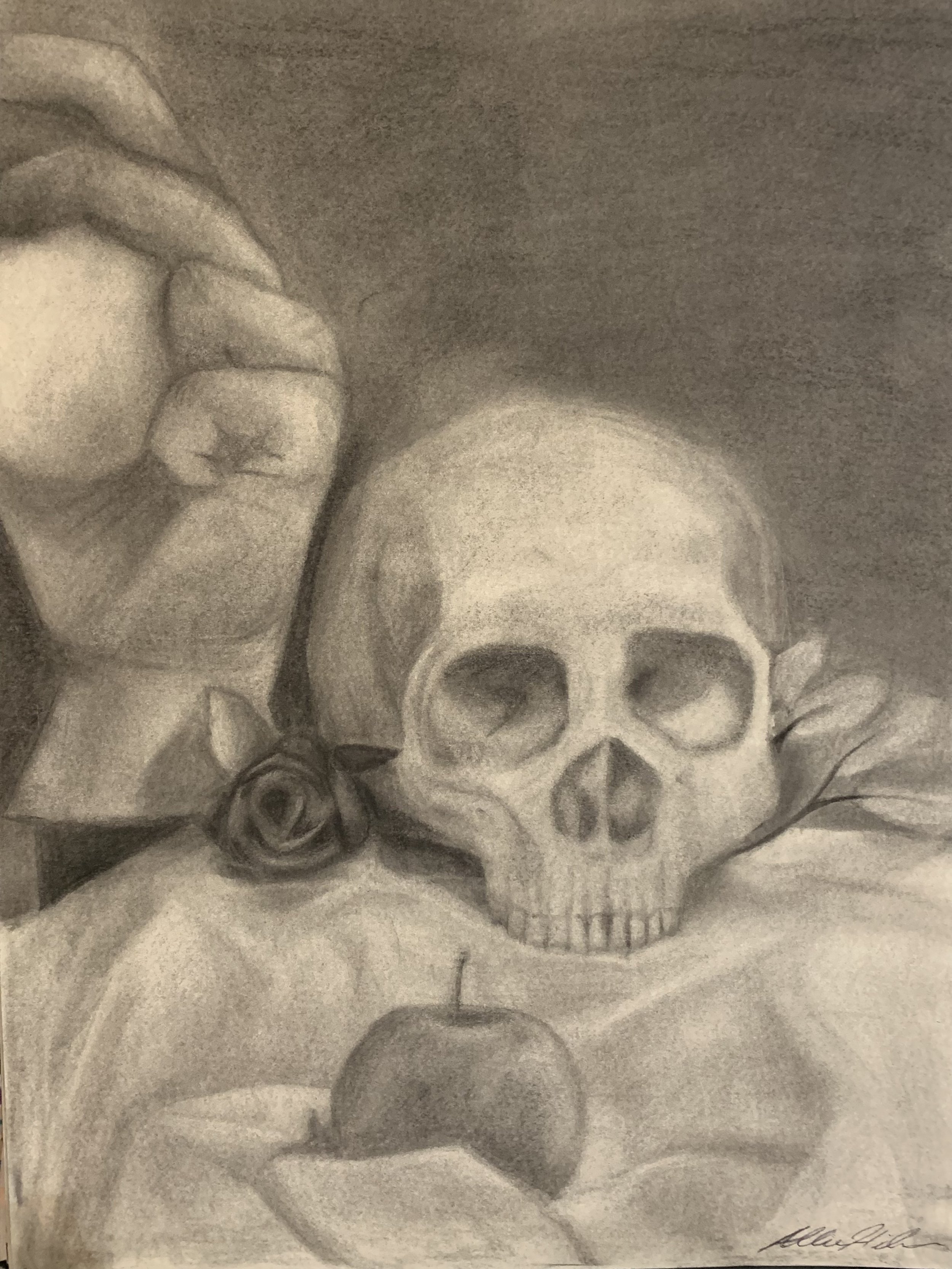 "Skull Still Life", 2021, Charcoal on paper, 20x24